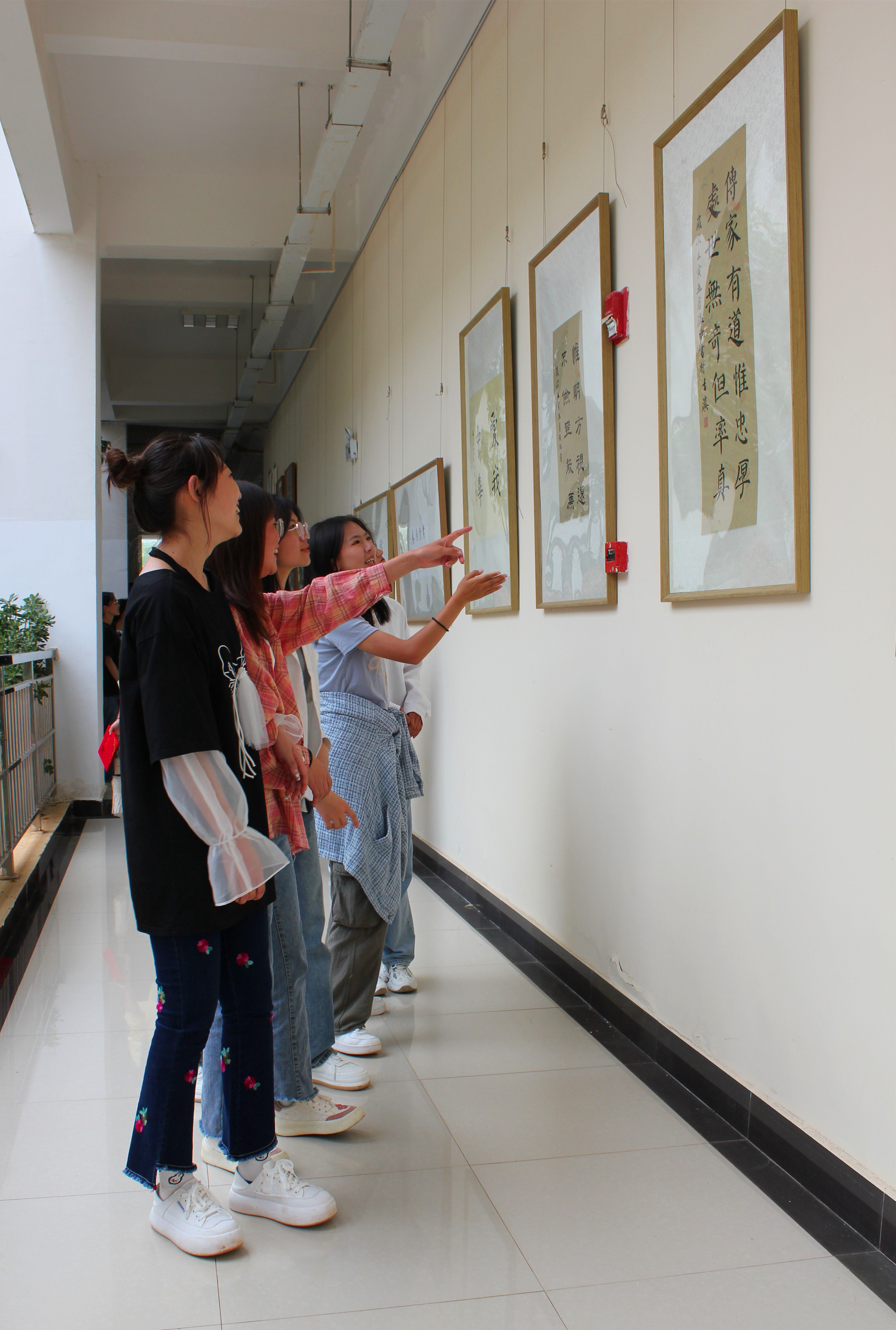 随后,参加活动的师生在图书馆参观了优秀书法作品展。2021级新闻采编与制作班、育才书法社社员合姝瑜同学说,加入书法社后,她的书法得到了很大提高;在书法社有专门同学教她们练习写字,慢慢地也开始喜欢上了写毛笔字。