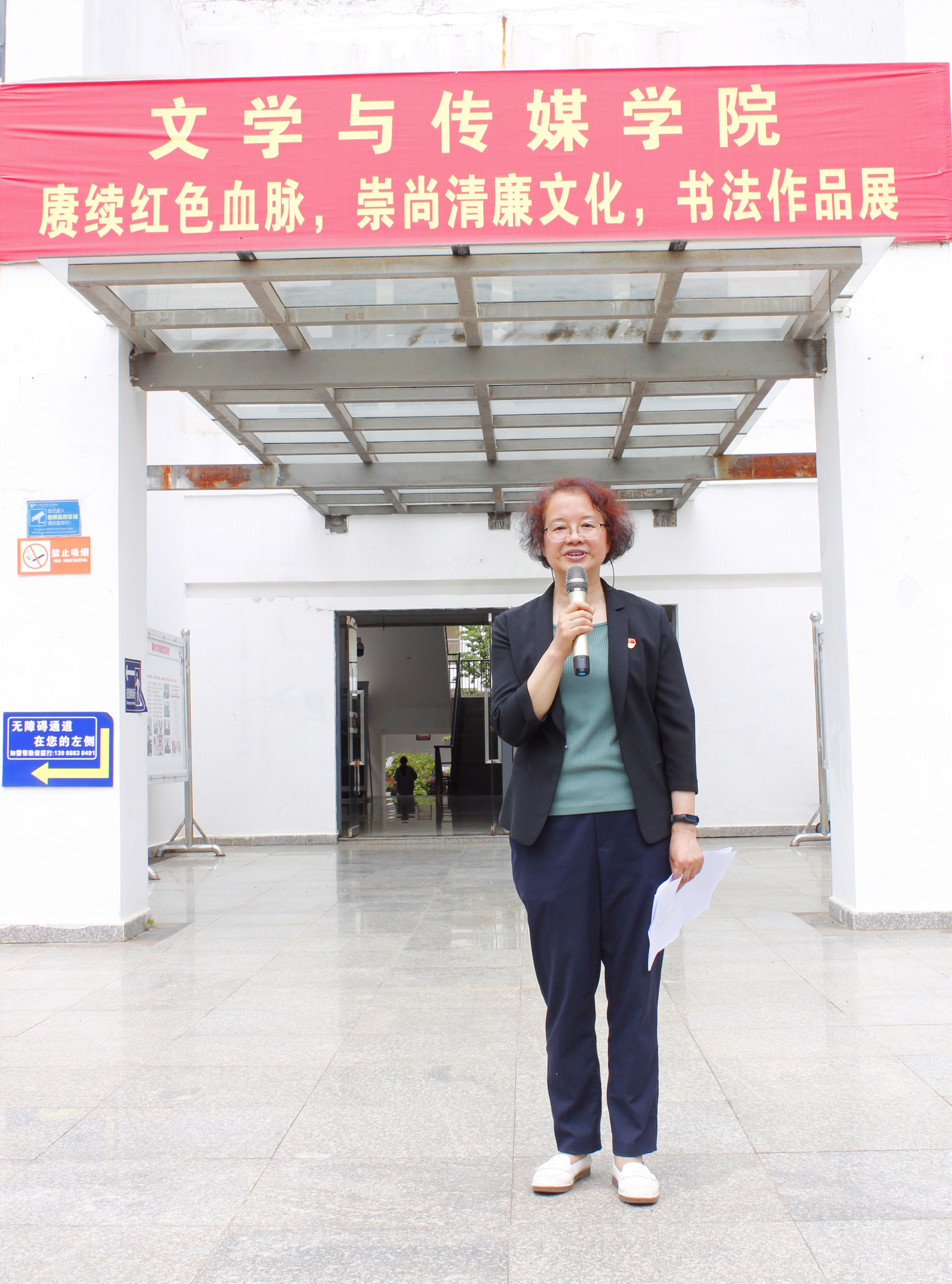 为持续推进“清廉学校”建设,努力营造以清为美、以廉为美的文明校园氛围。6月13日下午,在学校纪委、文学与传媒学院共同筹备和努力下,由文传学院承办的“赓续红色血脉·崇尚清廉文化”廉政书法作品展活动开幕。学校党委委员、纪委书记李淑良,纪检处、纪委办负责人,文学与传媒学院党政负责人及教师代表,育才书法社学生参加了活动。活动由文学与传媒学院院长韩敬源主持。